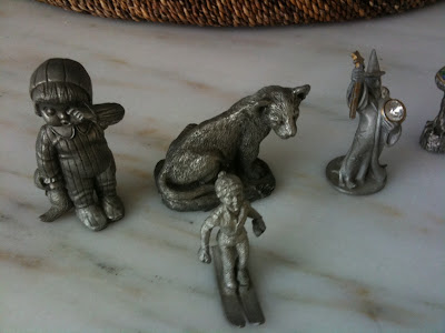 Collection of 19 pewter figures, ranging from large(five to six inches long) to medium(roughly 4 inches in length) to small. Any large figure is $35, the medium figures are $20, and the small ones are $5. Or take all 19 figures for $100.